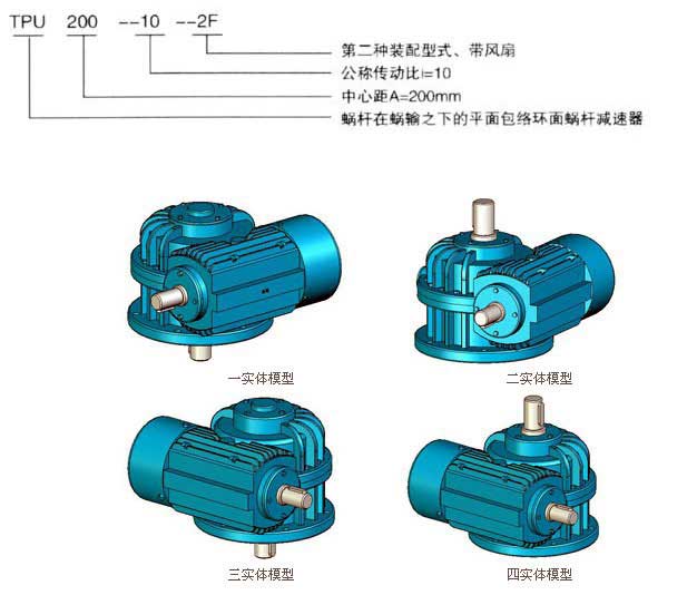 該減速器系列有四種型式:TPG、TPU、TPA、TPS 其中TP-平面包絡環面蝸桿組合為
