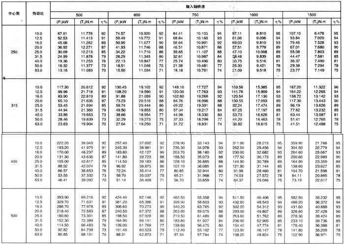 2.表中額定輸入功率P1及額定輸出扭矩T2,適用于TPU、TPS型減速器,工作載荷平穩無沖擊,每日工作8h,每小時啟動10次,啟動扭矩為輸出扭矩的2.5倍,小時負荷率jc=100%,環境溫度為20。